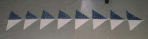 Lay these out on your pressing board and press the seam allowances to the DARK. trim points and snip threads between triangles.