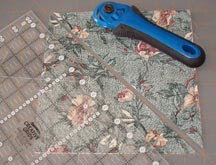 When your squares are squared up, layer them one on top of the other, with the dark of the top triangle on top of the light of the bottom. This way you will be sure that you have one 'uphill' block and one 'downhill' block when you are done cutting.