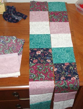 (8) 4" wide strips each of four different fabrics shown to the left ,cut selvage to selvage.