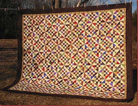 She sent a terrific batch of photos of her Patches & Pinwheels quilt: