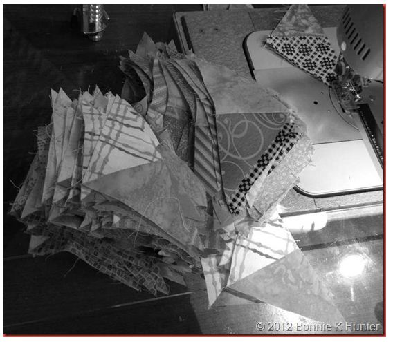 Yes, I love putting all those pieces through the machine, too. Very theraputic. I don't do the Netflix thing, instead, I listen to an audiobook. Have to be aware that is only good for chain piecing, not cutting or anything requiring very much attention. I've cut on the wrong mark or sewn some extremely odd bear paws by not paying enough attention.