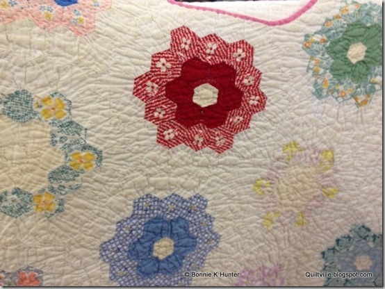 I just Love the hexacon quilt..as these are my "thing" as a starting quilter! I love the museline hexacon betweent the flowers..beautiful!!!