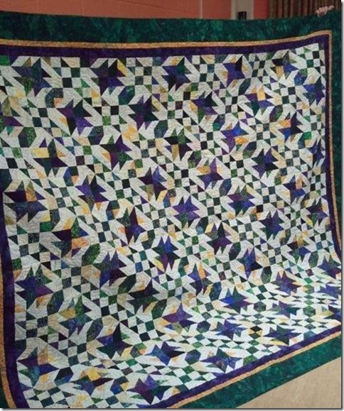 modern. I was looking in the nov/dec 2012 Quiltmaker magazine and saw the Texas Tumbleweeds pattern. It was perfect. Mine finished at 98"x106" and I just loved it.