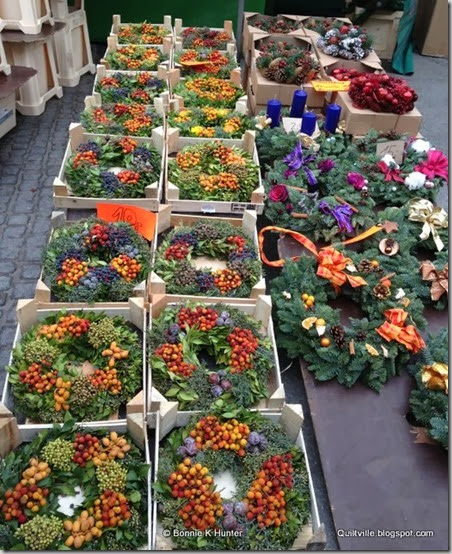 Welcome home, Bonnie! I am loving the picture with the wreaths on display and hope I can make my attempt to reproduce the wonderful color combinations for my own wreath.
