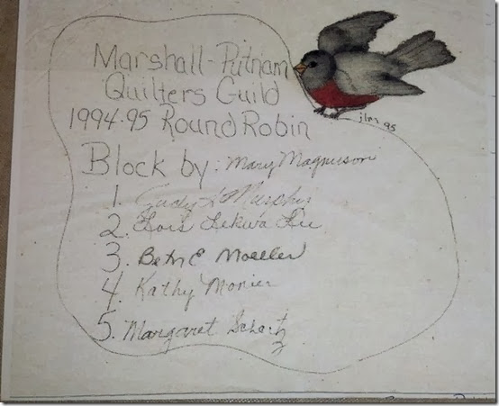 ReplyDeleteI am so glad I have the signatures of the ladies that helped make my round robin. I am trying to include all the info on the label that I can. Especially My name, the date, town and pattern name. Those ladies were so nice to try and get it back to someone listed on the label. I'm sure it will be loved as it should be by that novice quilter. We all want to know the "rest of the story".