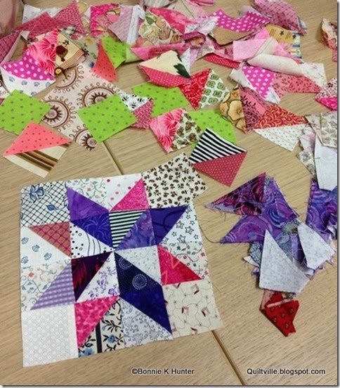 I knew I wanted to use either the pink Bonus Triangles left from my recent Sister’s Choice finish, or the purple Bonus Triangles from the border of Lazy Sunday ---but couldn't decide on which until I started playing last night. Why not use both?