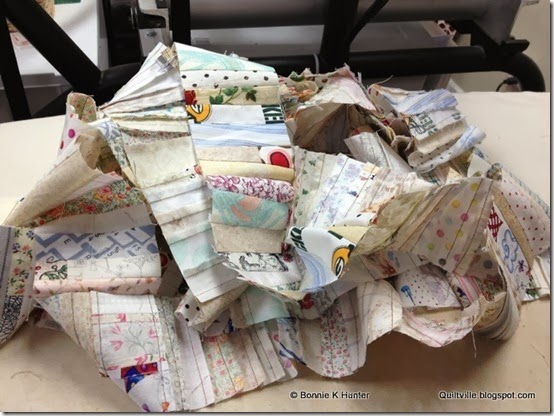 And the fabrics have been so fun to mix up --- novelties ((Yes, even zombies ala Tonya!)) and batiks and old calicoes and civil war shirtings mixed with white on white and cream on cream, and even the back sides of many of the fabrics that were too dark to be LIGHT.