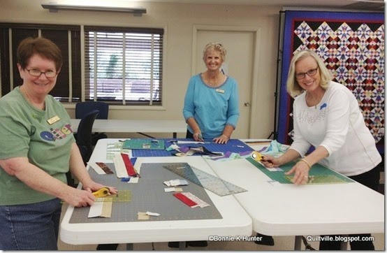 3. All these ladies seem to be having a fabulous time. Their projects are great. I'd love to see the completed quilt for the one done in purple, green and pink. I think it was green and pink HST's and purple for the star points. It was so bright and cheery, I would love seeing how the entire quilt turns out. One of these days I'd like to attend one of Bonnie's classes.