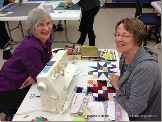 All these ladies seem to be having a fabulous time. Their projects are great. I'd love to see the completed quilt for the one done in purple, green and pink. I think it was green and pink HST's and purple for the star points. It was so bright and cheery, I would love seeing how the entire quilt turns out. One of these days I'd like to attend one of Bonnie's classes.