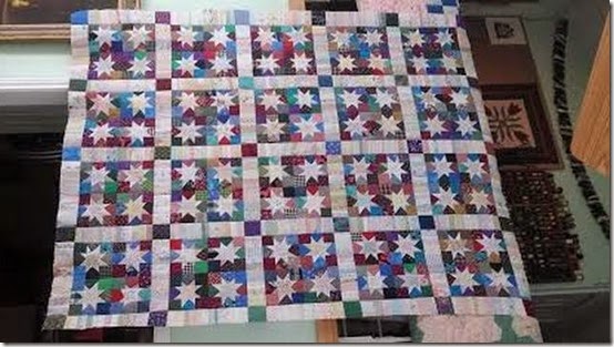 What a lovely quilt! That Wonky Wishes is just asking for me to make it. Since I have already made a lot of Maverick Stars, I think I need to do Wonky Wishes. It will be so much easier since I have more darks than I do lights in my scraps. Lots of muslins (different shades) appear in many of my quilts, so it will be easy to make the stars. I'm so glad others share their quilts with you and that you then share with us. Thanks, Bonnie and Desi!