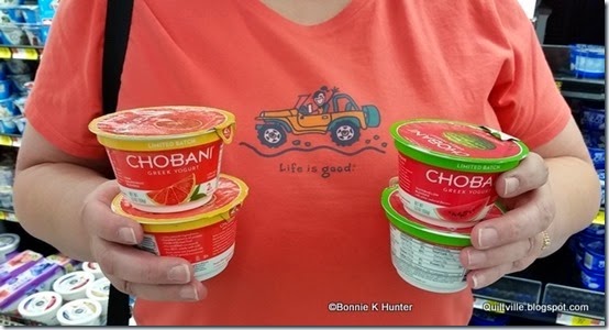 ReplyDeleteI know several asked about the Chobani yogurt. How was the Watermelon flavor? Will have to look for hit here. I love Mary Jo's, my son and family live not to far and I try to get there when visiting them. What are the orange, green, and blue stickers on the fabric in Mickey's picture? Was wondering if this was some sort of sale or clearance. Quilty friends are the best, I unsewed some pieces the other day for 2 friends in a bargello class.
