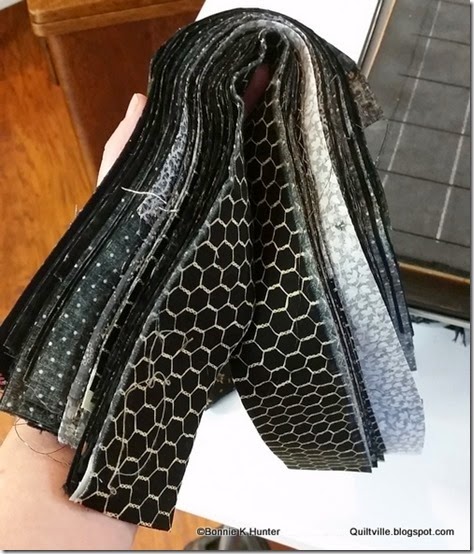I am low on black strips, so I dug into what was left up here from Grand Illusion and sliced away. You can see the bounty in my hand in the first photo above.