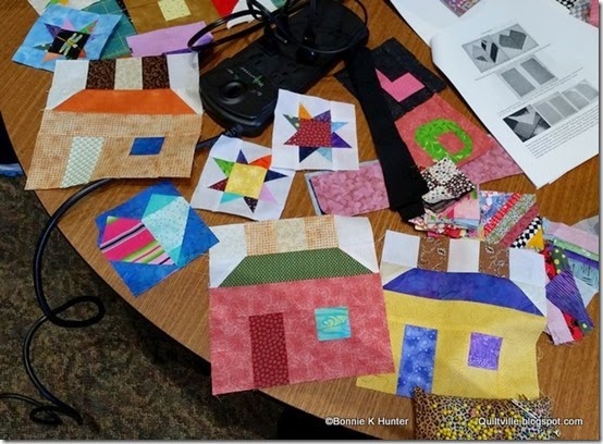 It is always a treat to see what other quilters bring to the table --- some had left over half square triangles they were going to work in, some had other blocks besides the houses to give purpose to orphan blocks that had been laying around or just waiting for the right project.