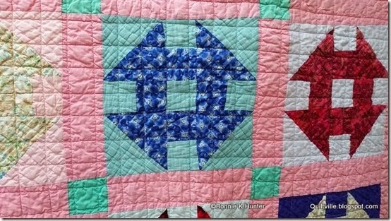 This one was fun….several of the blocks have little to no contrast, and these fabrics date form the 1950s-1960s!