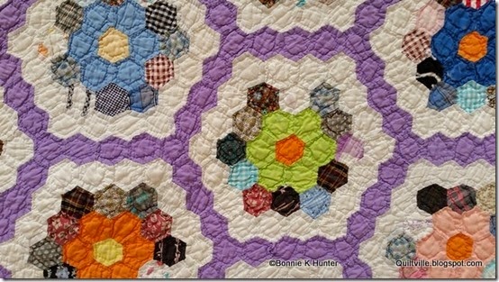 Until today, when I saw that picture I did not really care for hexie quilts. That quilt changed my mind. It makes me want to learn how to make a hexie quilt if it turns out looking like that.