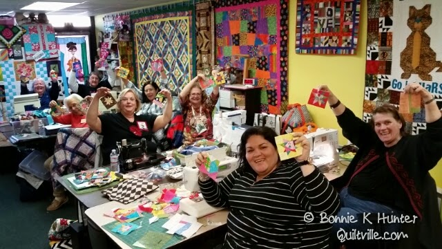 Today's crumbs workshop at Country Crossroads Quilt Shop in Orange Park, Florida went off without a hitch, all 16 students ready and eager to play in the scraps.