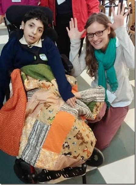 Here are a couple of pics from the trip. One is of Adam* with his new wheelchair & quilt. He had a crush on one of our physical therapists