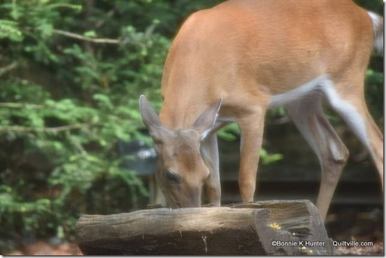 The Deer is beyond cute! The eyelashes are great, but you really should talk to her about the whiskers! :) I have a problem w/letting go of quilts, so much that one person probably won't get another one, loved to death is OK, but abused by cigarette burn holes and bleached till thread bear because it got so dirty from the dog is another story, it lasted 2 years.....sad, all my hard work!