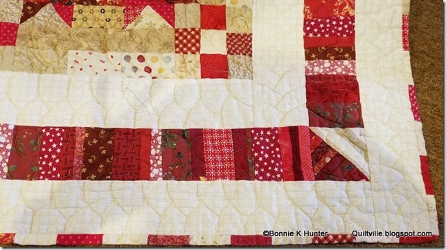 She also said she free motion quilted this on her home domestic machine. It’s a big quilt – and it can be done!