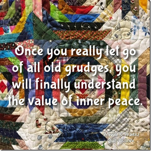 ReplyDeleteBRAVO, Bonnie Hunter. Congratulations, on your journey. Your quote of the day really hit home. I have had a grudge with 2 people in my life and it is time to let go to have real inner peace.