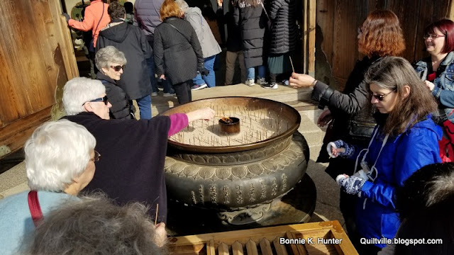 Lighting the incense.