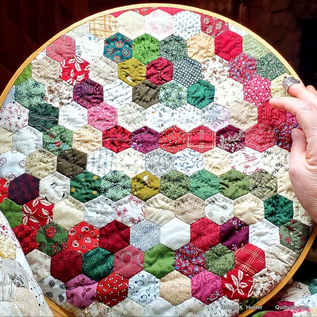 ReplyDeleteBeautiful hexi quilt, I love all your hand work Bonnie, it’s gorgeous. What quilt do you have on top of the crate?? It’s really lovely. Thanks for sharing all your nature pics from around Quiltville Inn — simply spectacular. ~Diana K., Hamilton (ON), Canada.