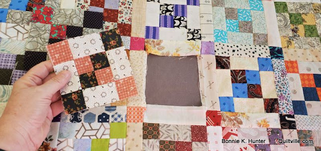 ReplyDeleteI've always wondered what your approach was to your "scrappy" quilts. Totally random, or some planning to make sure it looks random. when you said the matching background was a second oops, it gave me a chuckle. It's nice to know you do a bit of planning too, because I've never been able to just "grab and sew" whatever came out of the bin.