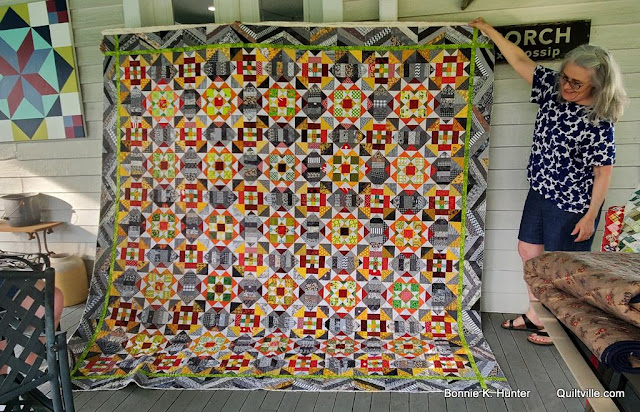 And for those wondering, no - they did not piece and quilt and bind entire quilts while on retreat, but they did bring finished quilts to share and photograph over the porch rail. And I'm so glad they did!