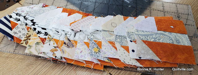 Bonnie, the oranges just performed magic with that green! I love it. I am going to remember to use that trick when I find ugly fabric that needs to be used up. A way to make it pretty again! Just moved back to NC and life is a bit chaotic, but I am downloading all the mystery parts so that when I can sew again, I will start. Merry Christmas to you and your family.