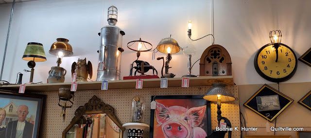 1. Those lamps remind me of the TV show Flea Market Flip where they had to take weird things and turn them into "useable" items. I think they called this category Steam Punk or something like that. These may be the rejects! LOL! Isn't the pretty blue machine at the same place as the sideboard?? Hmmm . . . maybe it will come home with you too!
