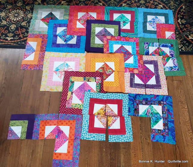 ReplyDeleteIn the early morning shenanigans picture, I was drawn to the block in the bottom row missing it's ears -- looked like "hands on hips" to me and the googly eyes would have just made it. LOL! Like the poster above, I'd love to know something about the batik blocks there on the wall (2 pictures above the shenanigans picture). Thanks for sharing some of the fun with us!