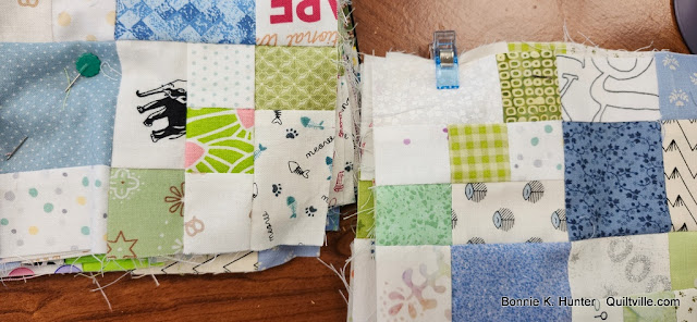 I can see the construction difference in the picture with 2 piles of County Clare blocks, but I had to study for a while before I could see it in the overall picture. No worries--I think the focus will be the green and blue chains and that the neutrals won't even be noticed. Love the colors you're working with.